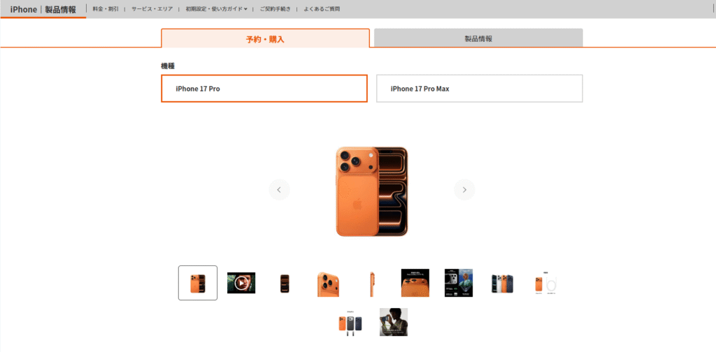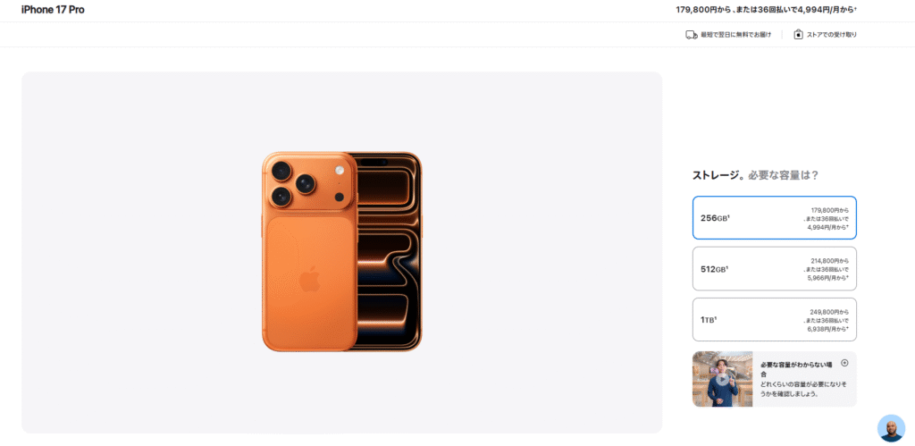 こちらがアップルオンラインストアでのiPhone17Pro256GB ¥179,800